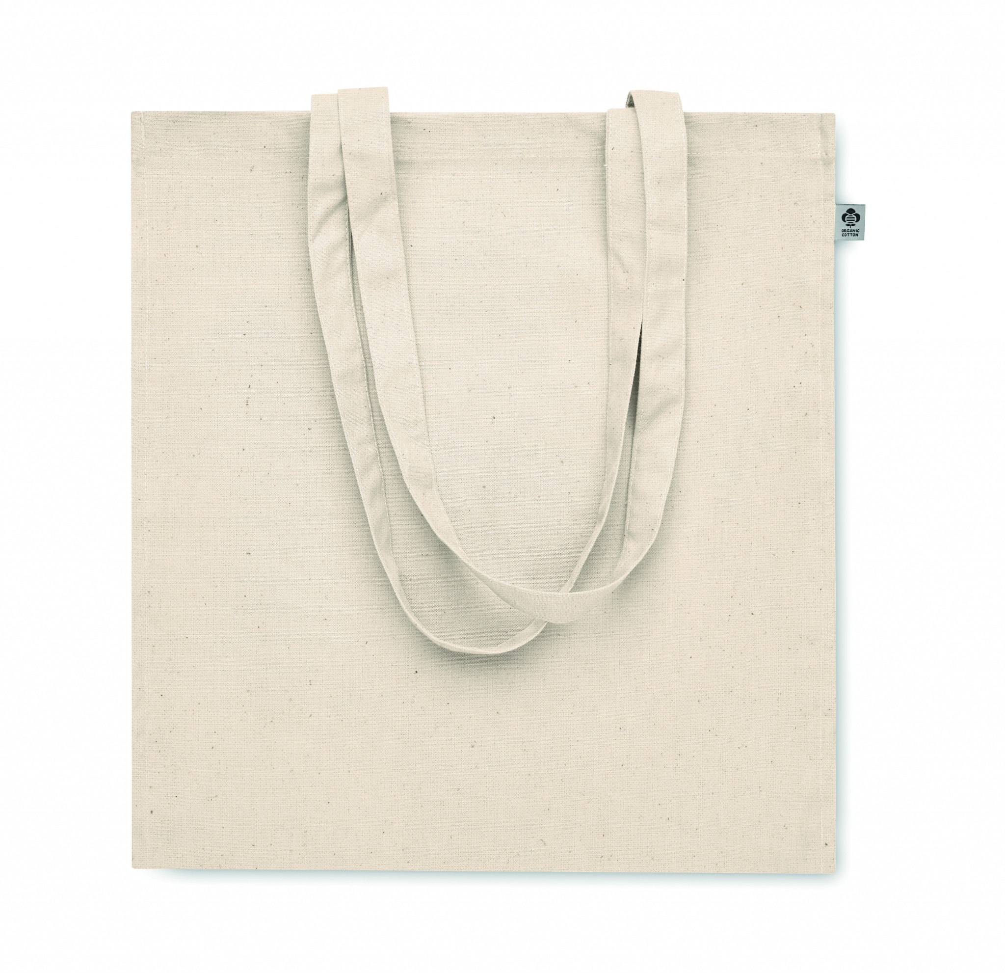 Einkaufstasche aus Organic Cotton mit langen Tragegriffen und Bodenfalz. 220 g/m².