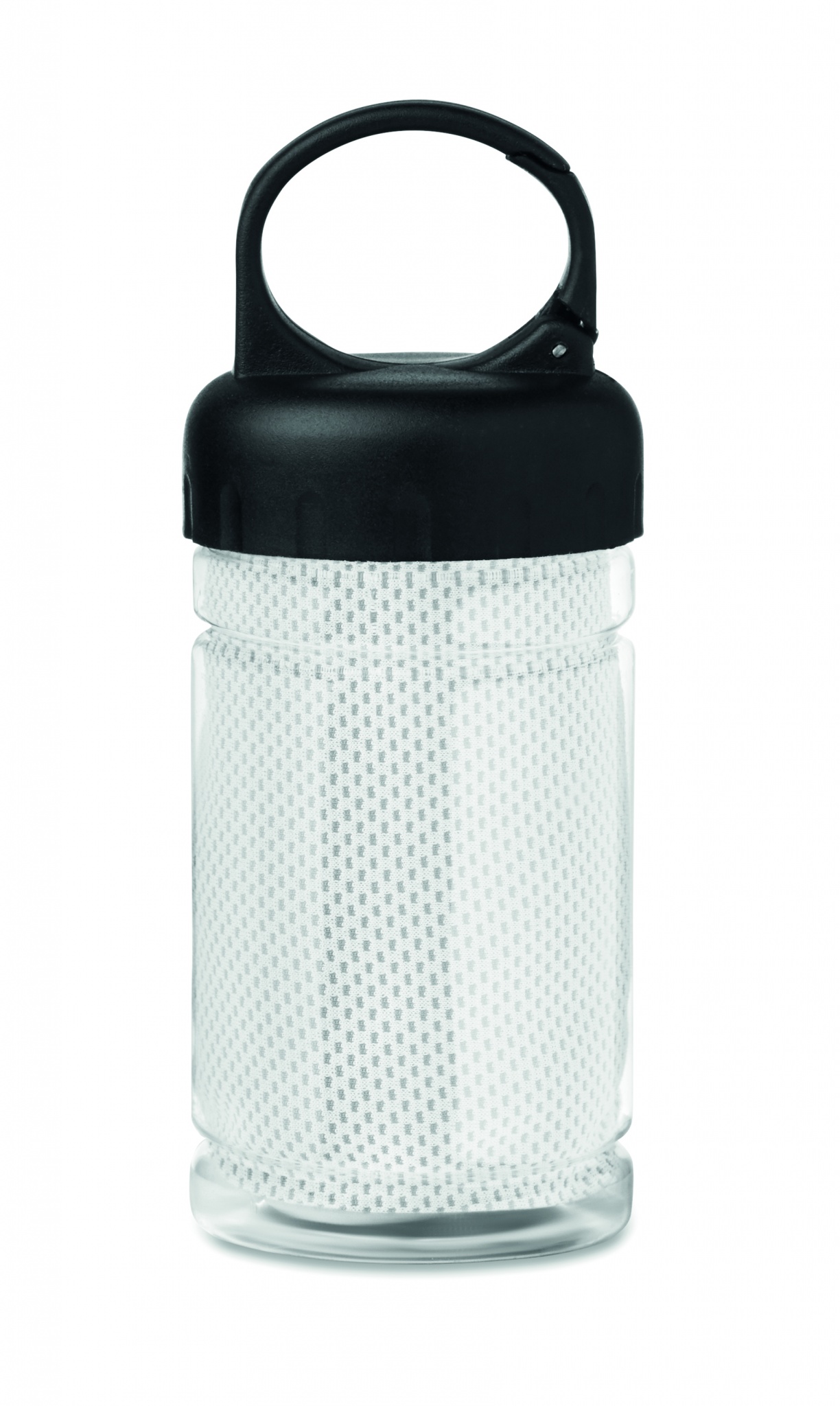Handtuch aus 100% Polyester in einer PET Flasche. Benetzen Sie das Handtuch mit Wasser und erfrischen Sie sich. Füllmenge: 300 ml. Maße Handtuch: 30x80cm.