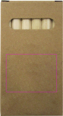 6 kurze Buntstifte im Kartonetui. Ihre Werbung drucken wir im Tampondruckverfahren in der gewünschten Farbe auf den Karton.