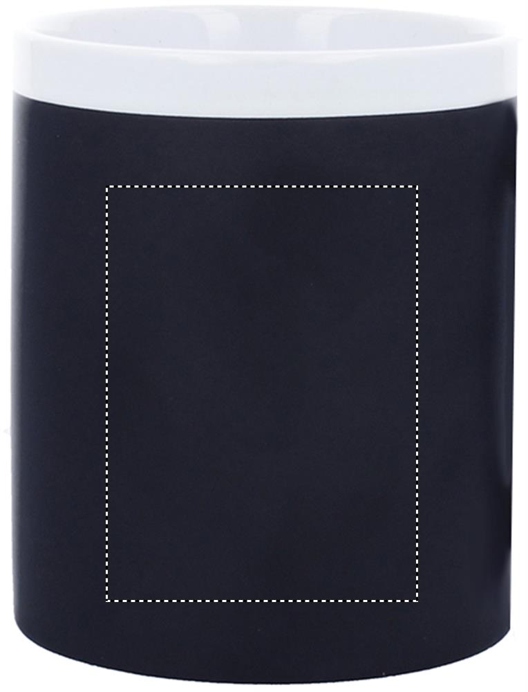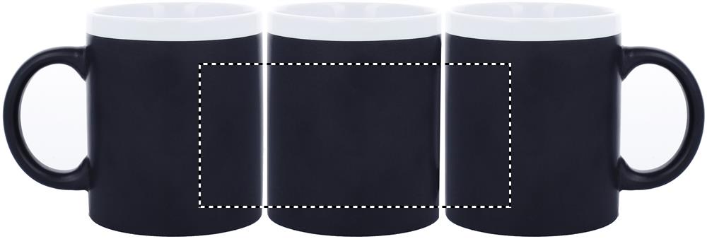 Kaffeebecher aus Keramik mit Tafelbeschichtung zum Beschriften. Füllmenge: 300 ml. Verpackt in einem weißen Karton.