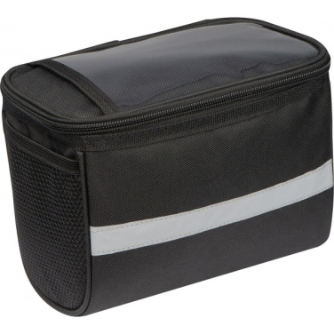 Fahrradtasche zum Befestigen am Lenker mit großem Hauptfach, Smartphonefach, das sich durch die Folie per Touch bedienen lässt. Reflektorstreifen auf der Vorderseite zieht zusätzlich die Blicke auf Dich. Dein Logo wird auf die Tasche gedruckt.