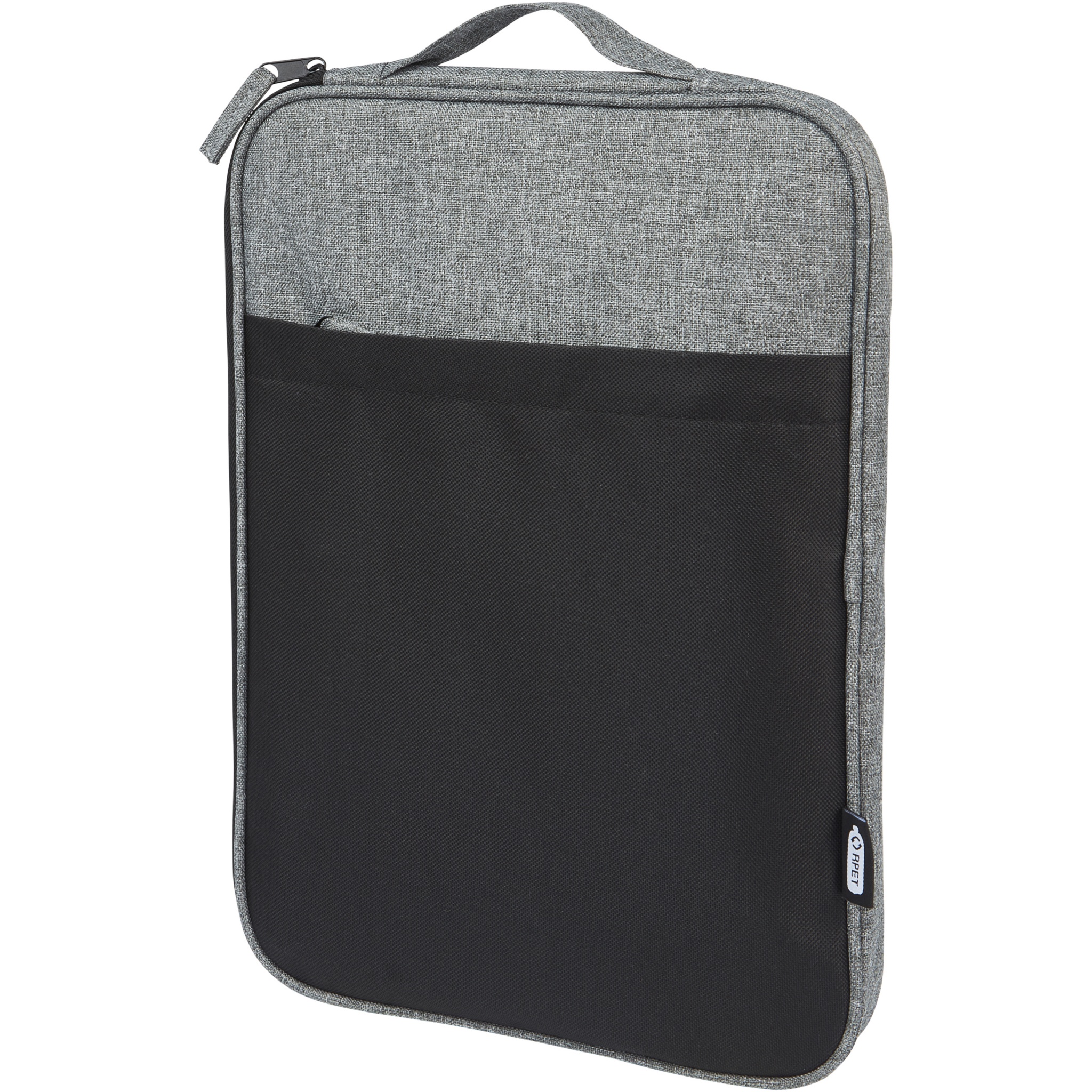 Die zweifarbige Laptophülle besteht außen zu 100 % aus recyceltem GRS-Material und verfügt über ein kompaktes und geschütztes Laptopfach, in das die meisten 14-Zoll-Laptops passen. Außerdem verfügt sie über eine Vordertasche mit Reißverschluss für Dokumente, Notizbücher und kleine Accessoires sowie einen Tragegriff und ist damit perfekt für den täglichen Arbeitsweg geeignet.