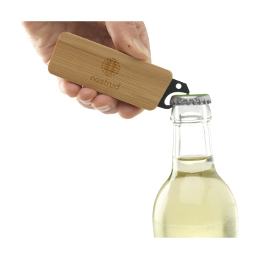 Handliches Multitool mit Edelstahl-Flaschenöffner mit Bambusgriff und 4 Gabelschlüsseln in verschiedenen Größen.