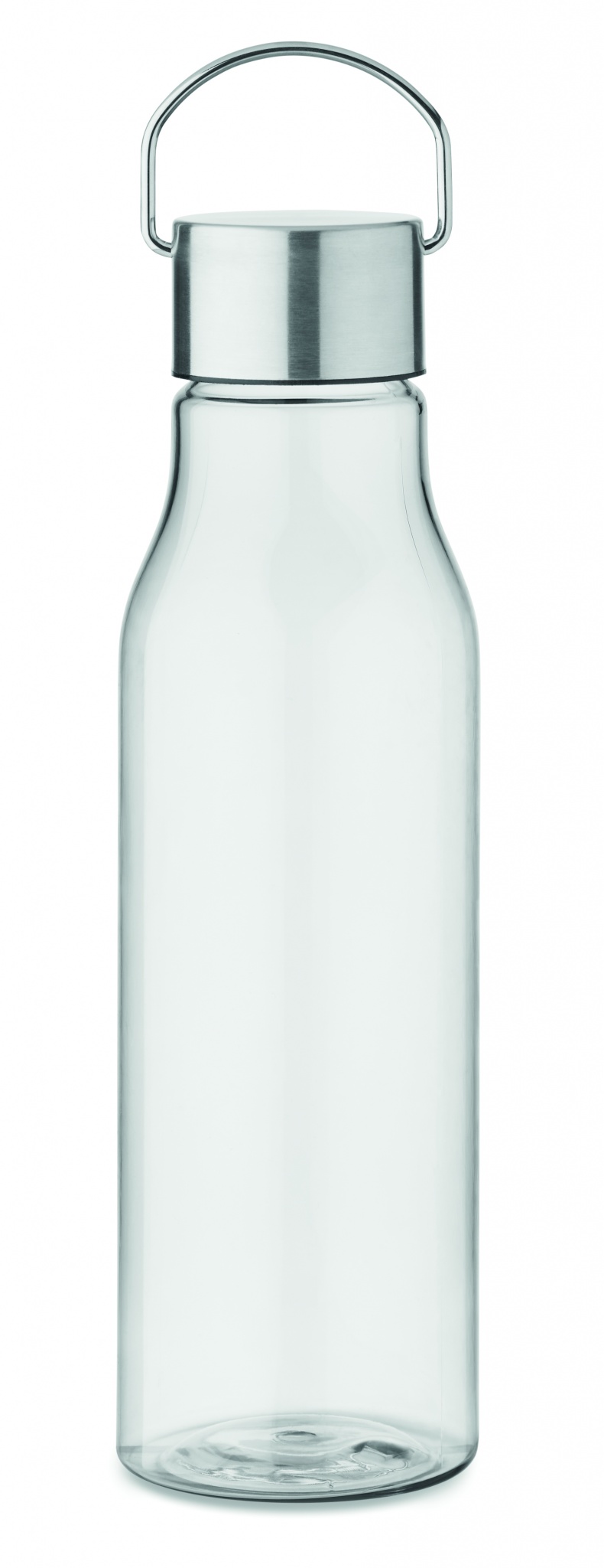 Trinkflasche aus BPA-freiem RPET. Verschluss aus Edelstahl mit Henkel. Auslaufsicher. Füllmenge: 600 ml.