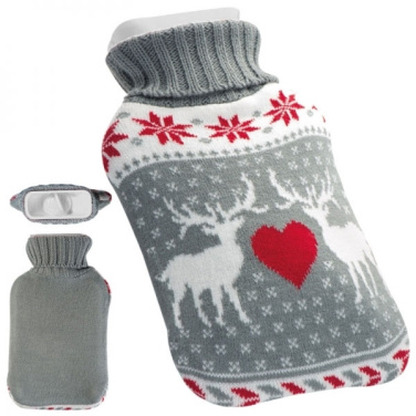 Wärmflasche mit kuscheligem Strickbezug und weihnachtlichem Motiv. Fassungsvermögen 500ml. Ihre Werbung drucken wir auf die Rückseite des Bezuges.