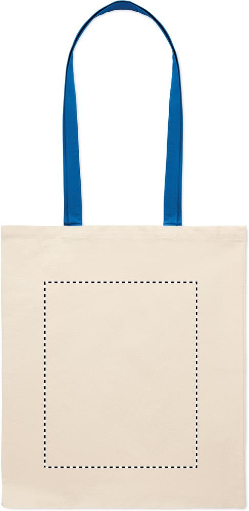 Cotton shopping bag with coloured long handles. 140 gr/m².