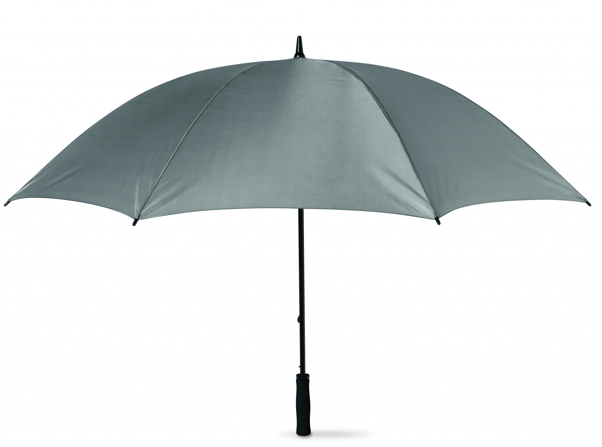30 inch manual open windproof umbrella in 190T polyester with fiberglass shaft and ribs. Black plastic tips and top. Straight black EVA handle. Manual closure.