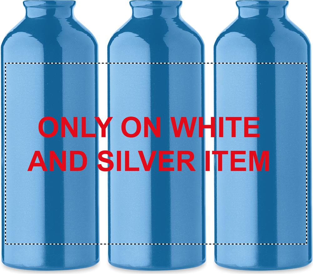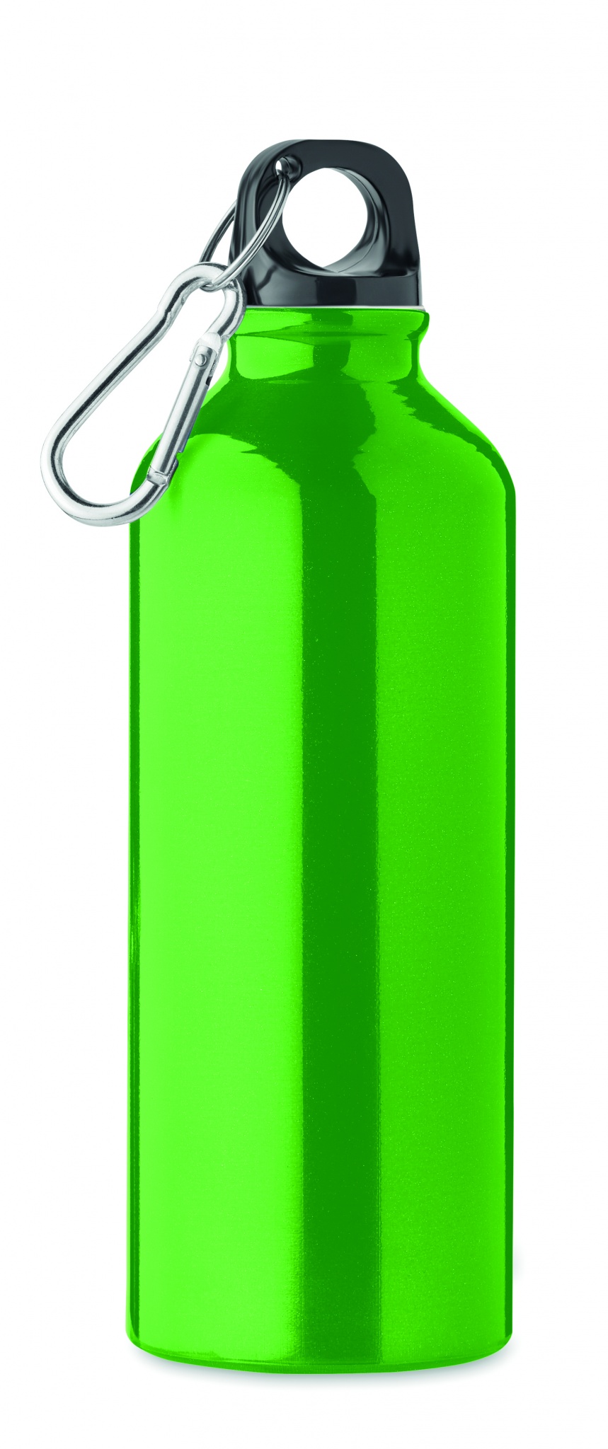 Single wall recycled aluminium bottle with carabiner. Capacity: 500 ml. Leak free. The carabiner is not for climbing (non professional use). Sublimation print available on white item only.