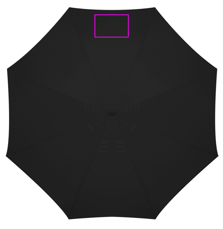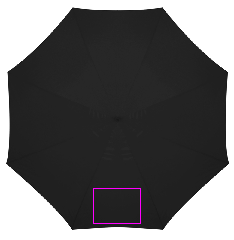 Automatic umbrella with metal frame, straight wooden handle and 170T polyester covering. Your logo will be printed on one segment.