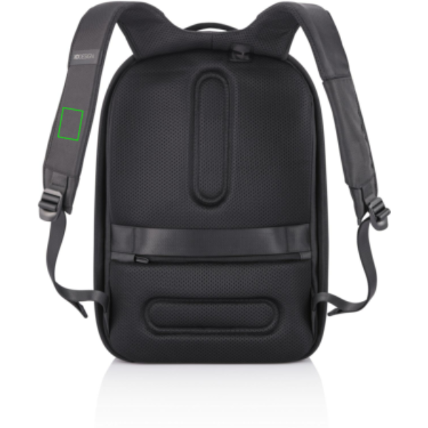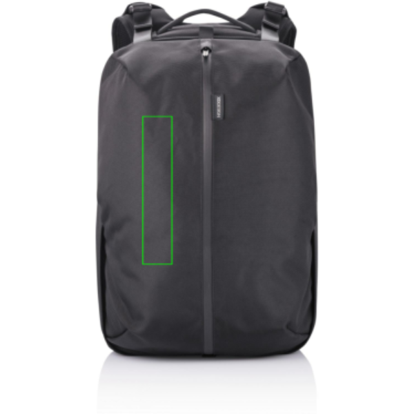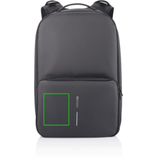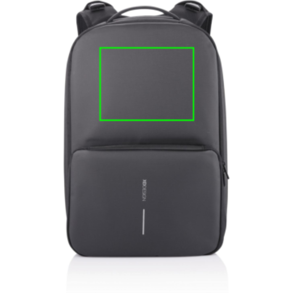 Flexible and practical, the Flex Gym bag is the first business backpack and gym bag in one. Quickly convert this backpack from business to gym style by expanding the front pocket from 16 to 24 litres. The anti-theft design with no front access and hidden zippers in the main compartment will ensure that you carry your professional devices securely. With the RFID-protected pocket on the back, you can safely store your wallet, cell phone, or credit cards. Additionally, this backpack keeps you powered with a fast USB charging port on the shoulder strap where you can also find a sunglasses holder. The Flex Gym bag is the perfect backpack whether you are on your way to work, university, or the gym. Made from R-pet fabric with the AWARE™ tracer. With AWARE™, the use of genuine recycled fabric is guaranteed. 42% recycled content. Registered design®