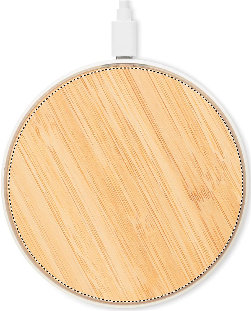 Wireless charger 10W in bamboo top and ABS base. Connect device to your computer, place smartphone on it and let it charge. Output: DC 9V/1.10A (10W) for quick charging. Compatible with latest Androids, iPhone® 8, X and newer. Bamboo is a natural product, there may be slight variations in colour and size per item, which can affect the final decoration outcome.