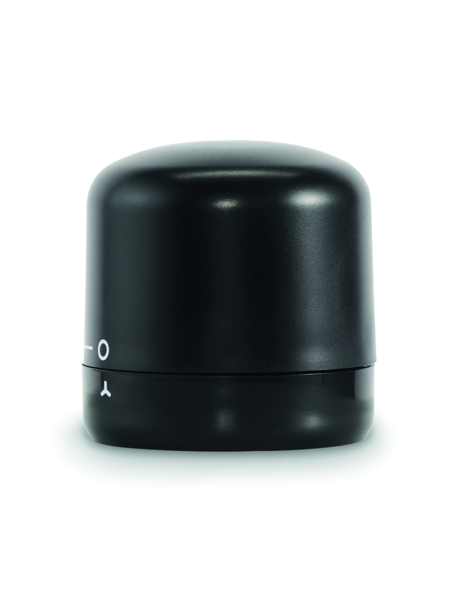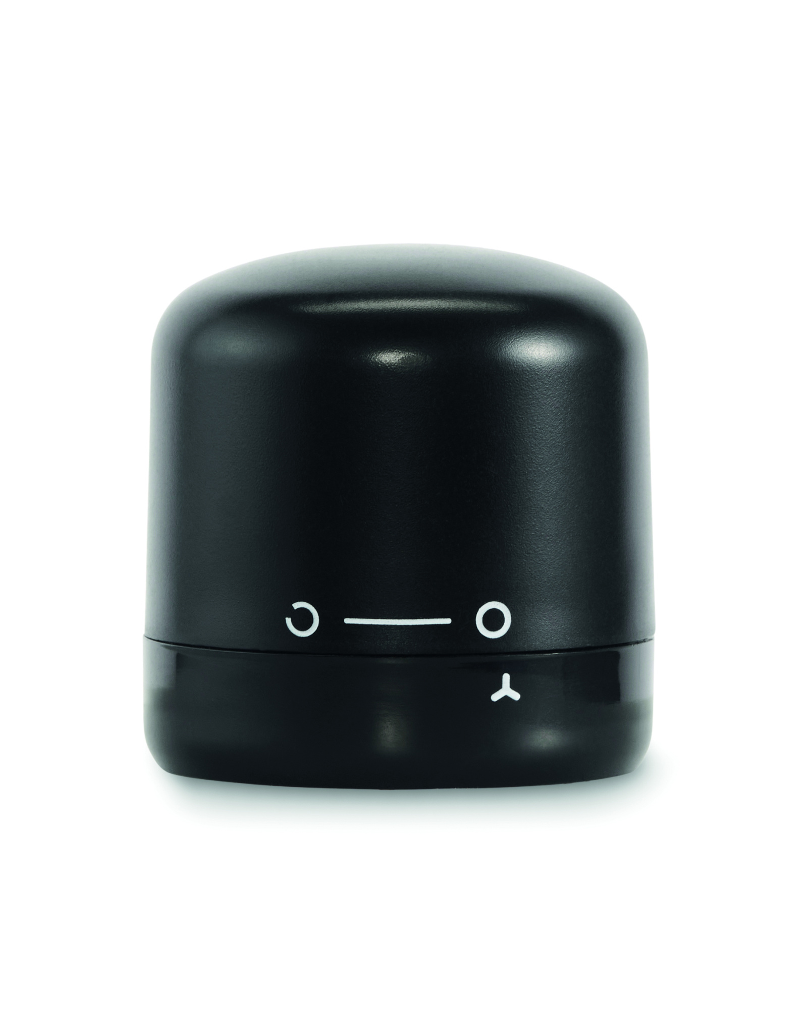 Bottle stopper made of recycled ABS for sparkling wine bottles. Features a turning lock mechanism and leak-free design.