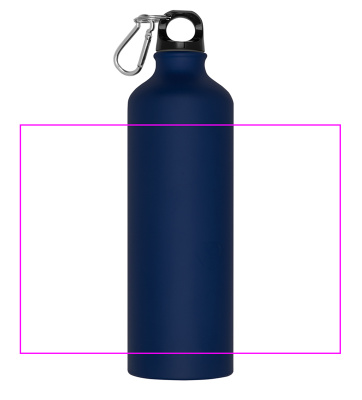 Leak-proof drinking bottle made of aluminum with carabiner and a capacity of 800 ml. Your logo will be lasered on the bottle.