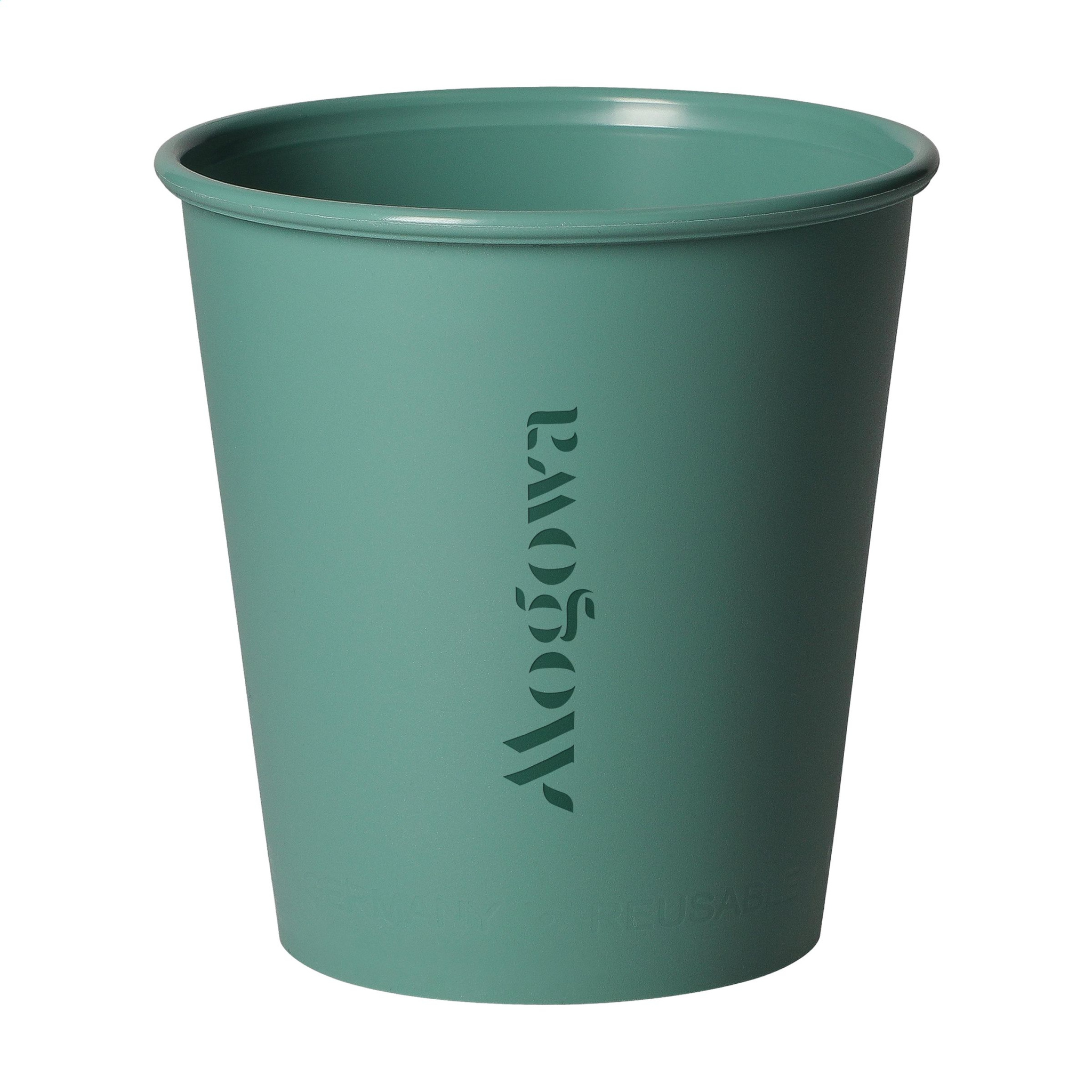 Reusable drinking cup made from bio-based material from renewable sources. This stackable cup is a good alternative to the disposable coffee cup. Fits under almost any coffee machine. 100% recyclable and BPA-free. This product is dishwasher-safe. Washing by hand is recommended to preserve the imprint. Capacity 200 ml. Made in Germany.