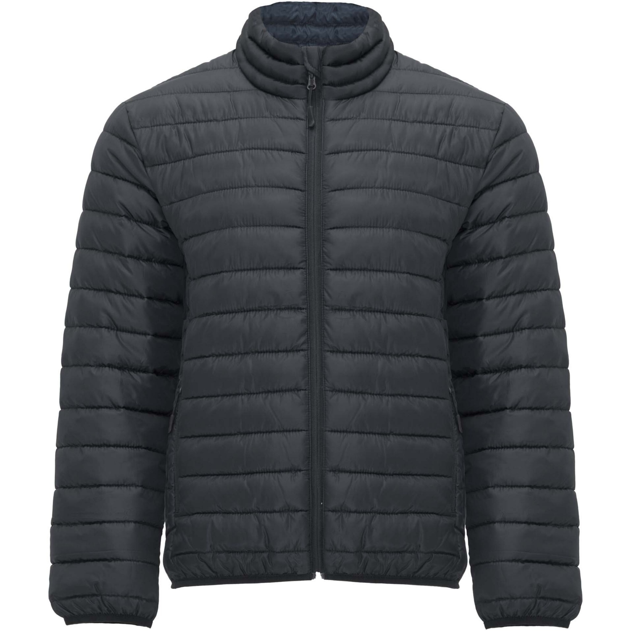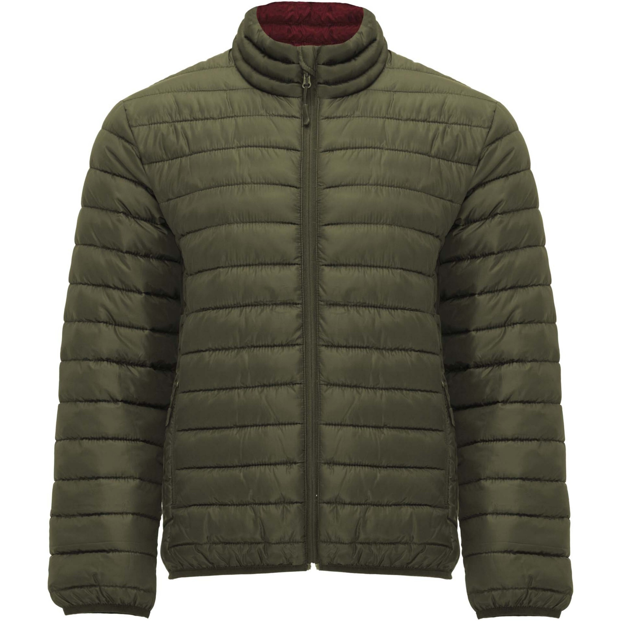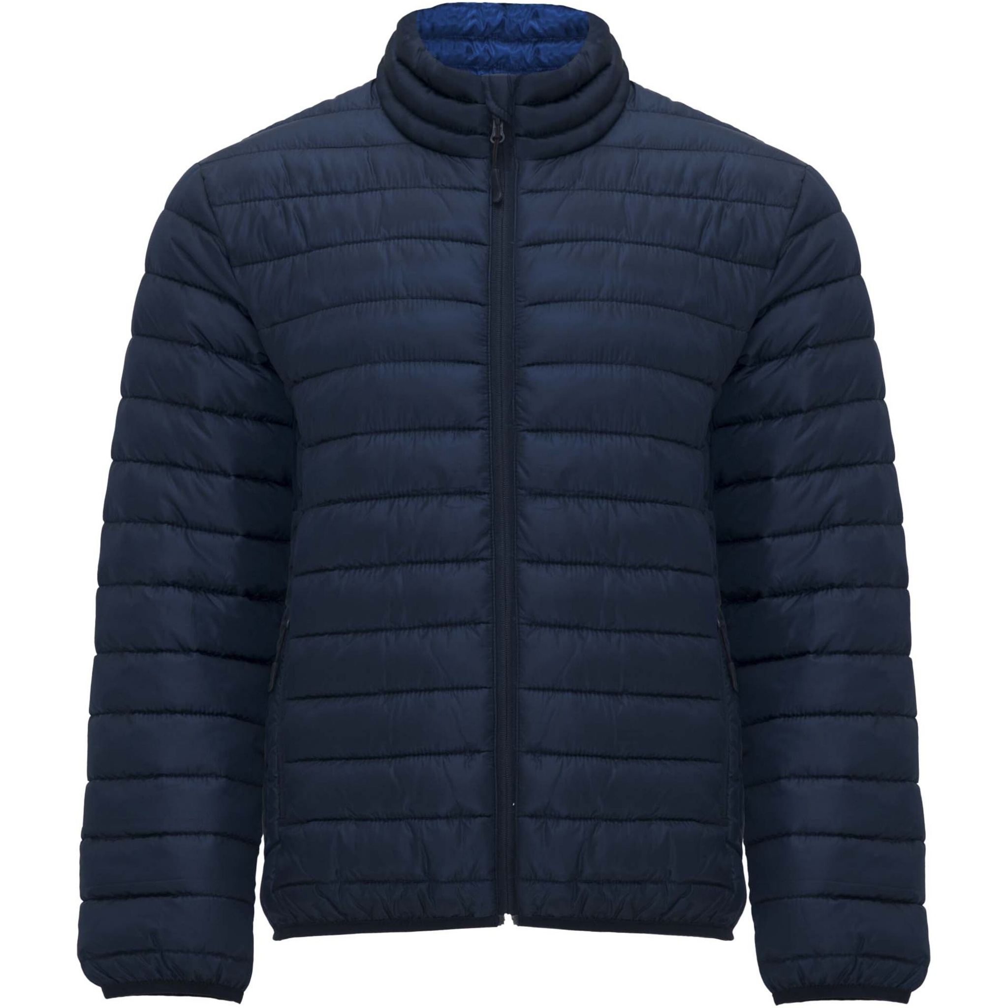 Men's quilted jacket with feather touch padding. Inverted zippers with matching chin protector and puller. Two front pockets with zippers. Matching elastic edging in collar, cuffs and hem. Contrasting inner lining. Includes stow carry bag. Lightweight and foldable garment. Removable label. Water resistant. Wind-proof. The model is 184 cm and is wearing size L.