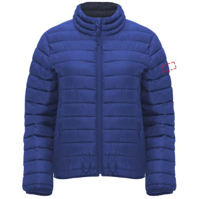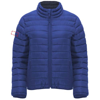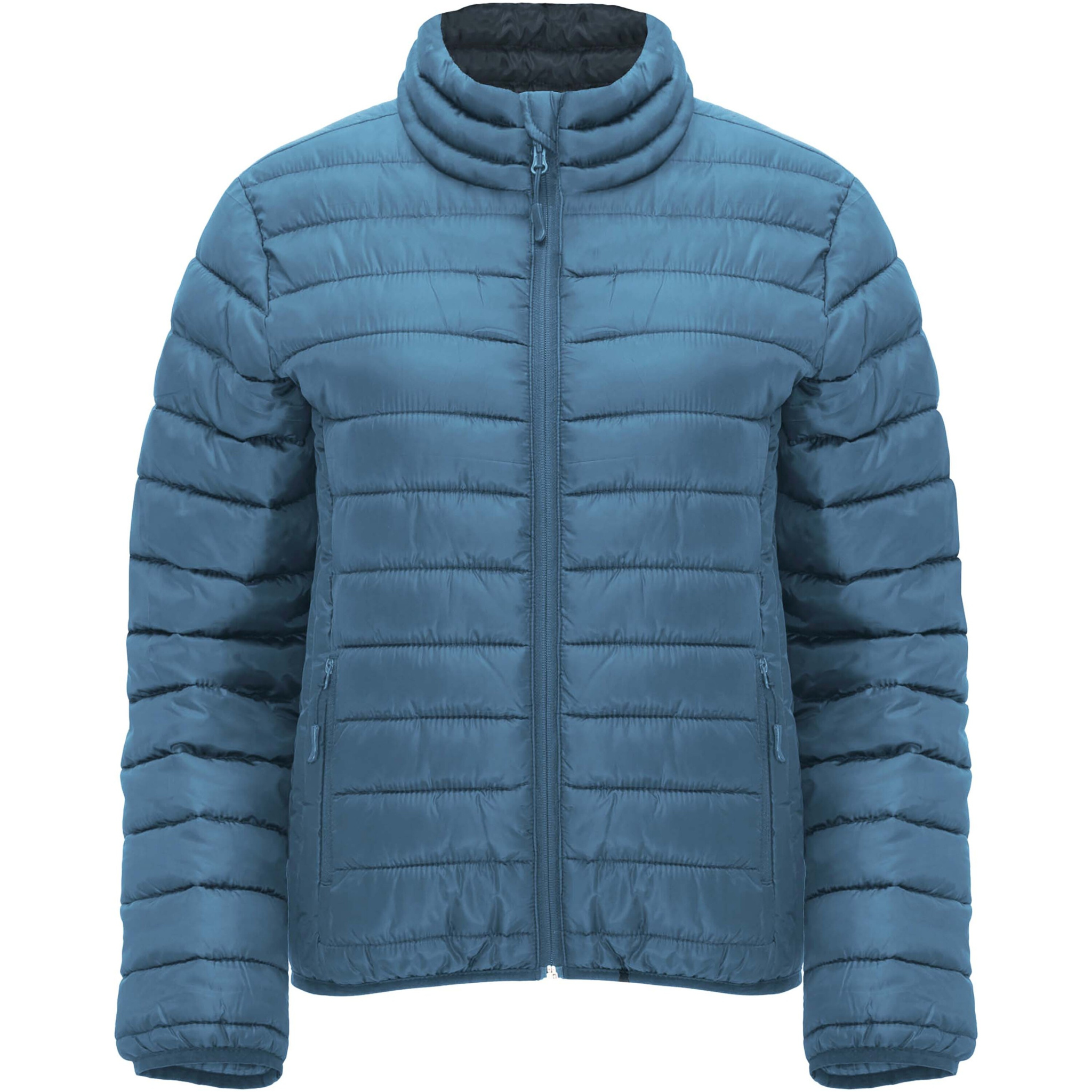 Women's quilted jacket with feather touch padding. Inverted zippers with matching chin protector and puller. Two front pockets with zippers. Matching elastic edging in collar, cuffs and hem. Contrasting inner lining. Includes stow carry bag. Lightweight and foldable garment. Fitted cut. Removable label. Water resistant. Wind-proof. The model is 179 cm and is wearing size S.