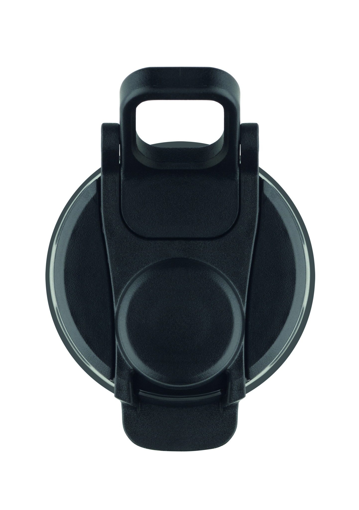 Foldable silicone sports bottle with PP lid, handle, polyester strap, and transparent buckle to secure when folded. Leak-free. Capacity: 500 ml.