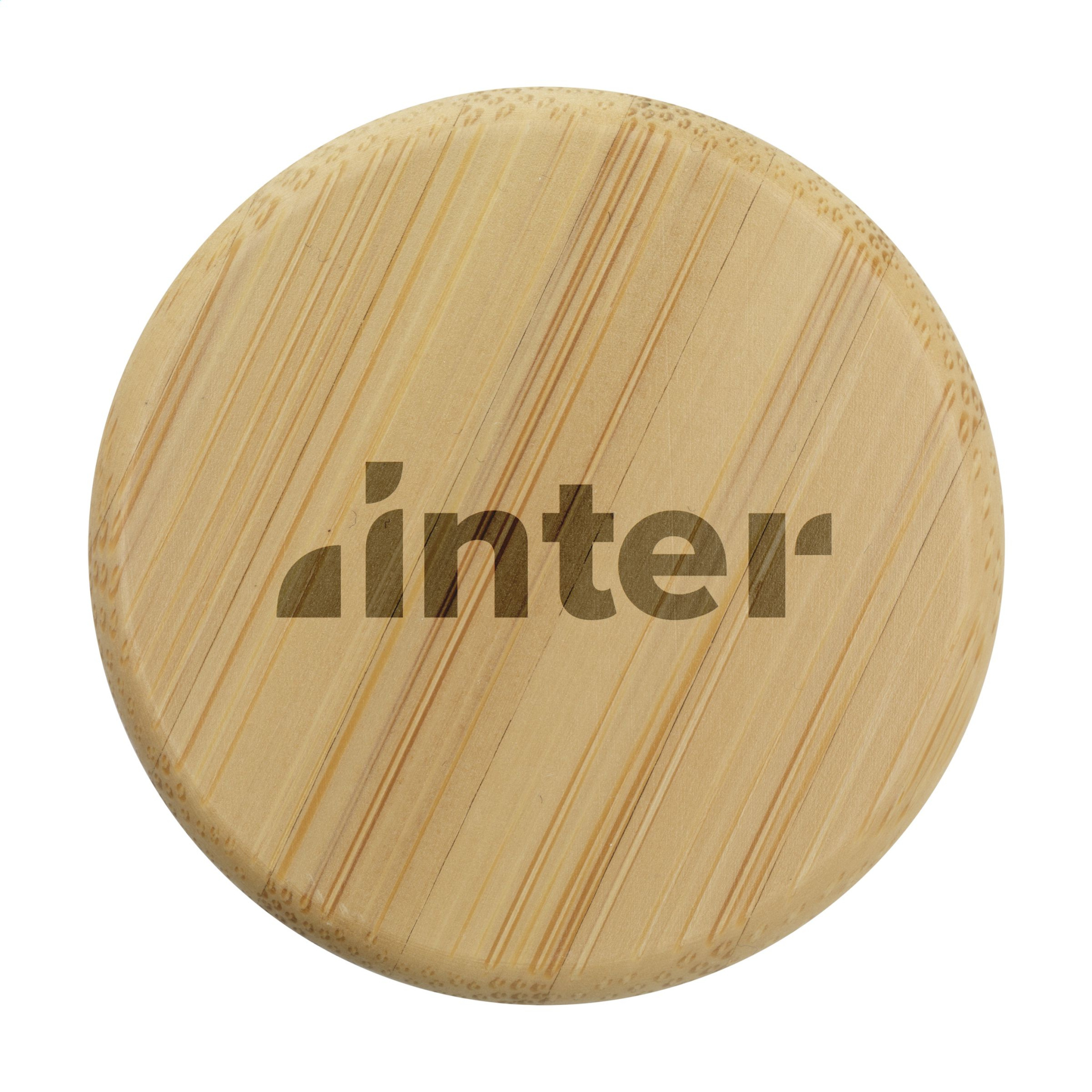 Drinking bottle made from high-quality, heat-resistant borosilicate glass. This bottle has a coloured, frosted coating. Supplied with a bamboo screw cap. Leak proof. Capacity 550 ml. Each item is supplied in an individual brown cardboard box.