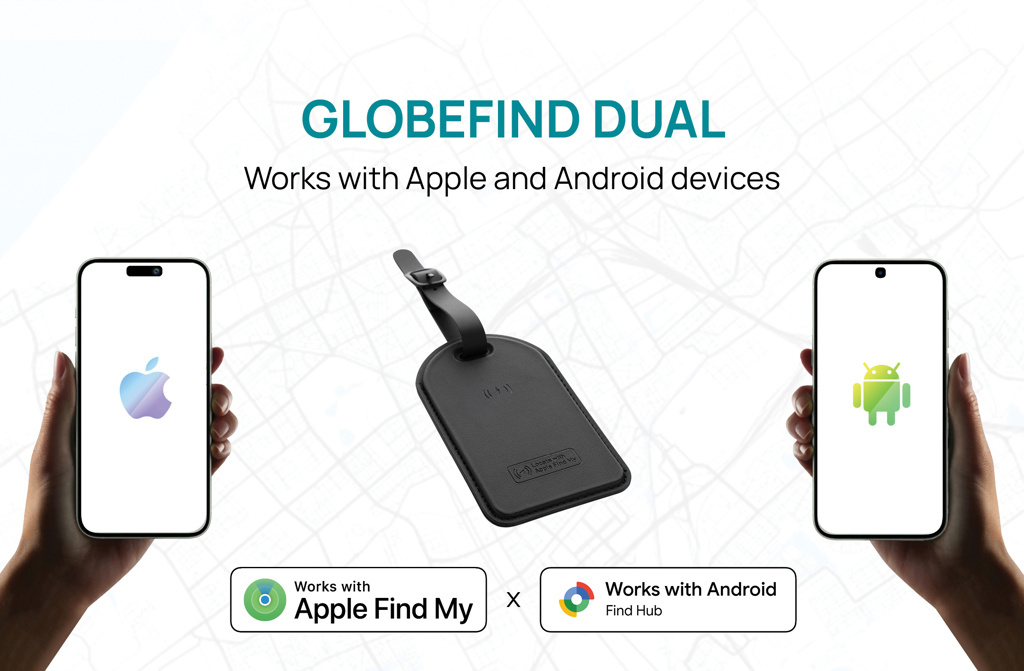 Never lose your luggage again with the ultra-thin Globefind Dual, a smart luggage tag featuring integrated locating technology that works seamlessly with both Apple’s Find My and Android Find Hub, making it suitable for a wide range of users. With Globefind Dual, you’ll receive an instant notification if you leave your suitcase or backpack behind, and even if it becomes completely lost, you can easily locate it anywhere in the world using the supported networks. Once you're nearby, you can activate a sound to pinpoint its exact position. Globefind Dual includes a long-lasting rechargeable battery; simply place it on a wireless charger and it will fully charge in one hour, providing up to six months of use without ever needing a battery replacement. Globefind Dual is made with RCS recycled polyester, with a total recycled content of 9% based on total item weight. RCS certification ensures a completely certified supply chain of recycled materials, and the tag comes packed in FSC® mix gif