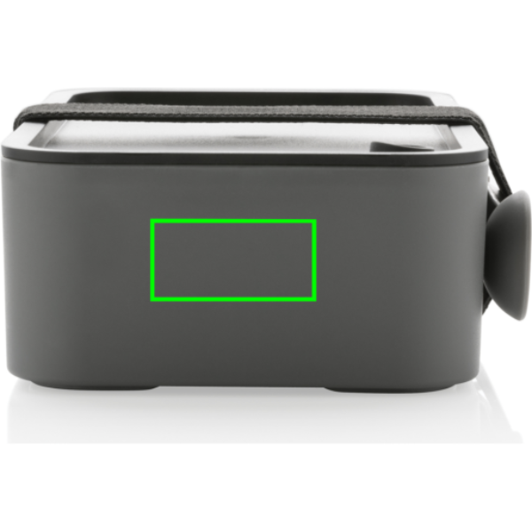 This stylish and sturdy lunchbox fits perfectly with a healthy lifestyle! It is big enough for carrying sandwiches and delicious salads. Made with 93% GRS certified recycled PP, GRS certification ensures a completely certified supply chain of the recycled materials. Including a handy spork and elastic strap. Capacity 1.2 litre. The lunch box is easy to clean, but should not be put in the dishwasher or used in the microwave.