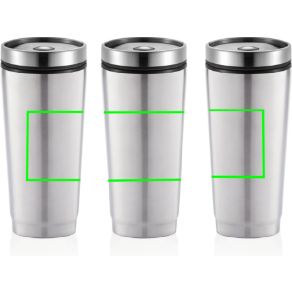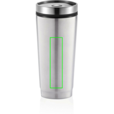 350ml stainless steel outside and PP inside tumbler with screw on lid and unique push button closure to prevent spilling. Suitable for single hand operation. Registered design®