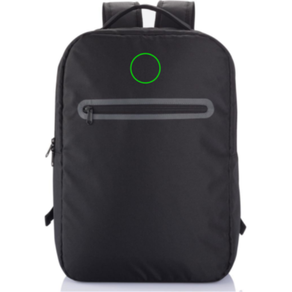 300D polyester laptop backpack with 1 main compartment which has a separate tablet pocket and an organiser. PVC free.