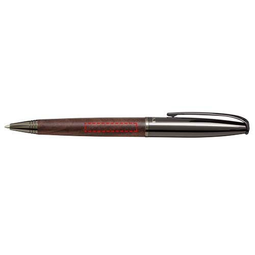 Twist ballpoint pen with a wooden-look barrel, made out of brass with chrome plating, delivered in a Luxe gift box. Ballpoint pen size: 14.1 cm, 1.2 cm, weight: 26 gr, writing length: 1500 m.