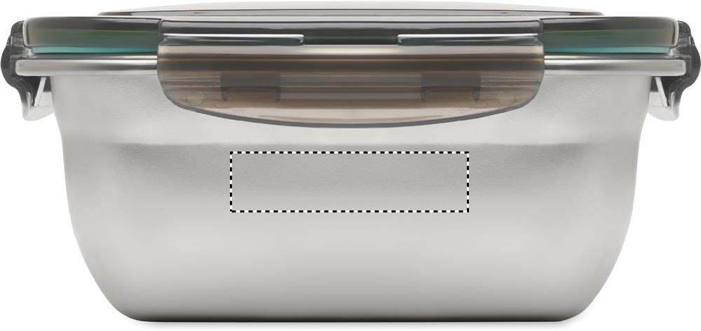 Recycled stainless steel lunch box with recycled PP lid and 4 side clasp closure. Including separator. Capacity: 1500 ml.