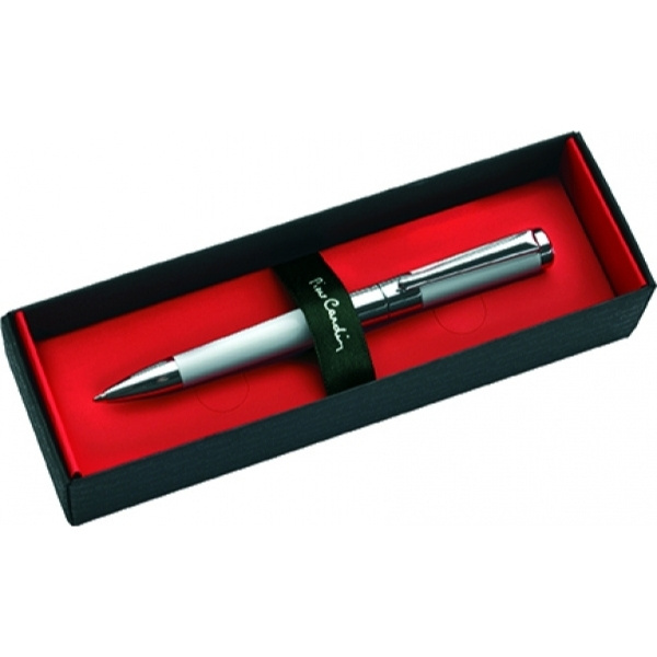 The elegant and branded metal ballpoint pen Pierre Cardin in white colour with silver details. Pen has a rotary mechanism and contains a quality refill in blue colour with the tip 1 mm. It is supplied also with a spare black refill. Packaged in a luxury box Pierre Cardin, comes with a certificate of authenticity.