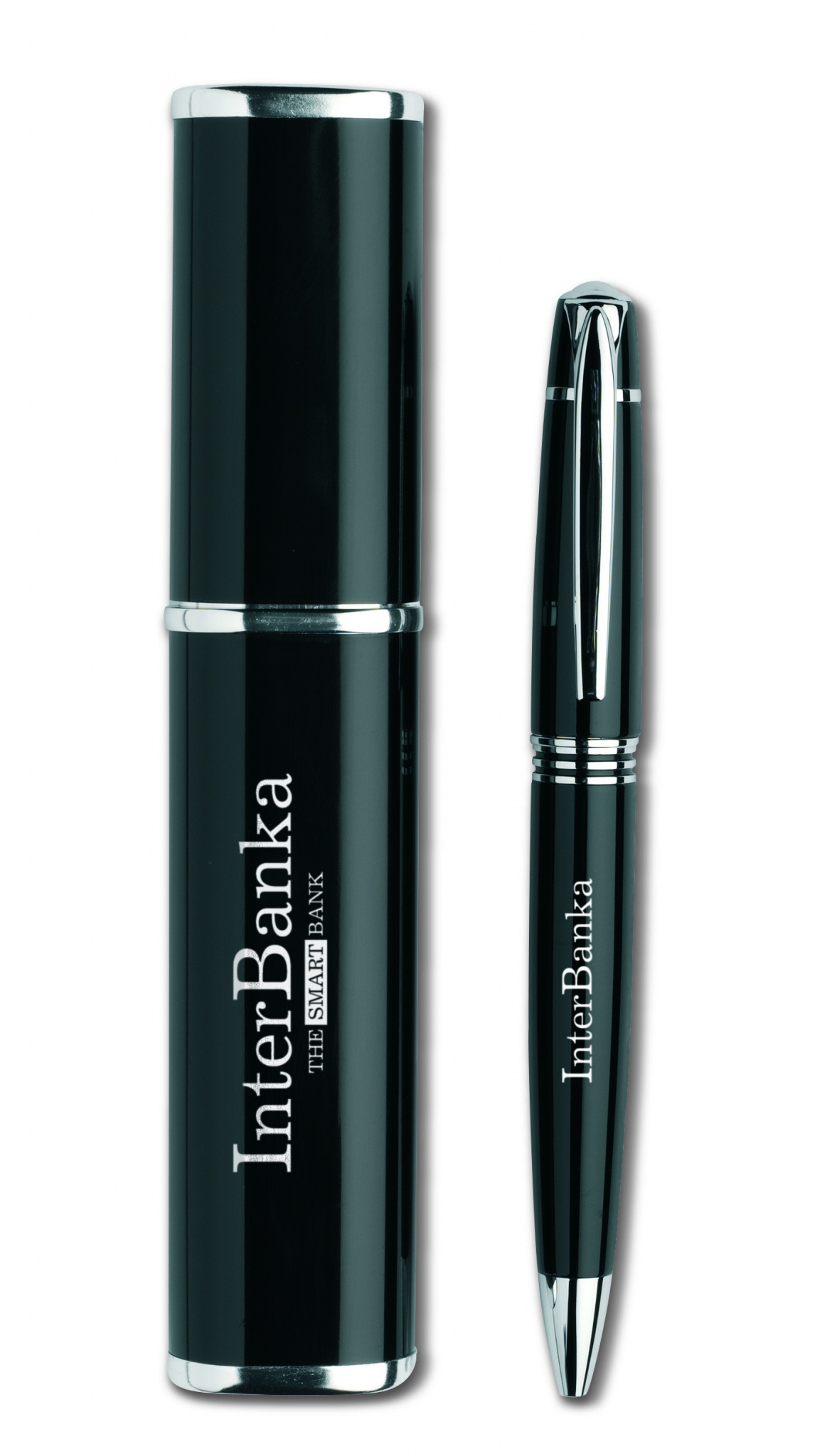 Metal twist ball pen in aluminium gift case. Metal refill with black ink.