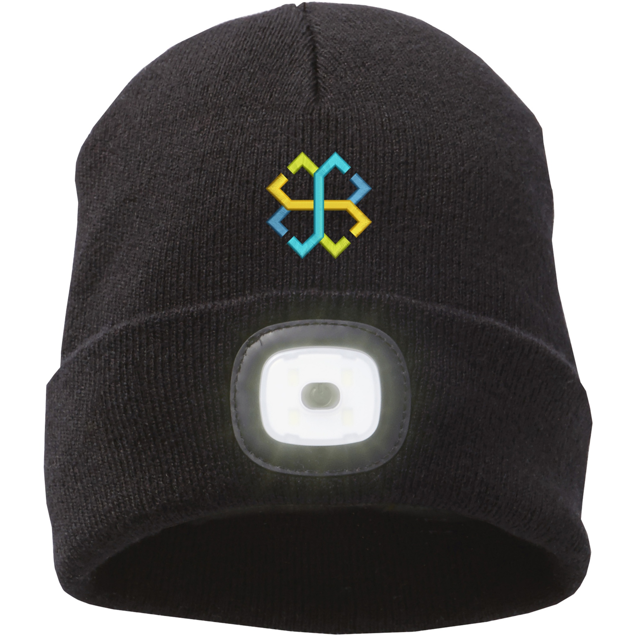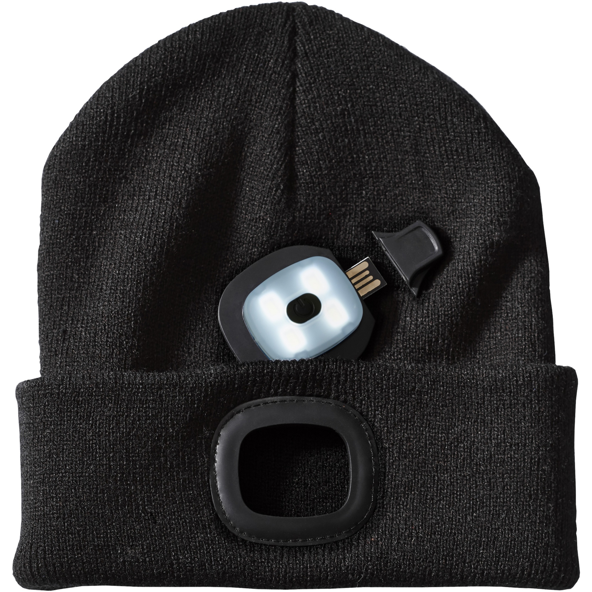 The Mighty LED knit beanie – a perfect combination of warmth and practicality. Made from a thick acrylic in a 1x1 rib knit, this double-layered beanie offers both coziness and warmth. But what sets this beanie apart is its innovative removable LED headlight, featuring three brightness settings. Conveniently tucked into the turn-back cuff, it can easily be removed for washing and recharged using a USB-A cable (not included). Whether you're braving the cold or needing extra visibility in the dark, this beanie is your reliable companion for all adventures. Elevate your winter wardrobe with the Mighty LED knit beanie, where fashion meets function seamlessly.