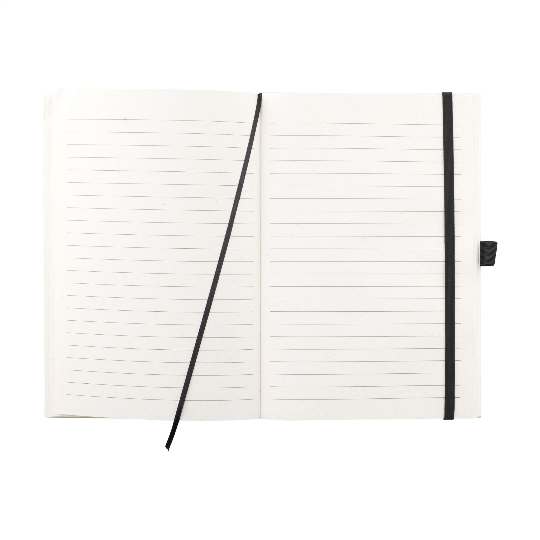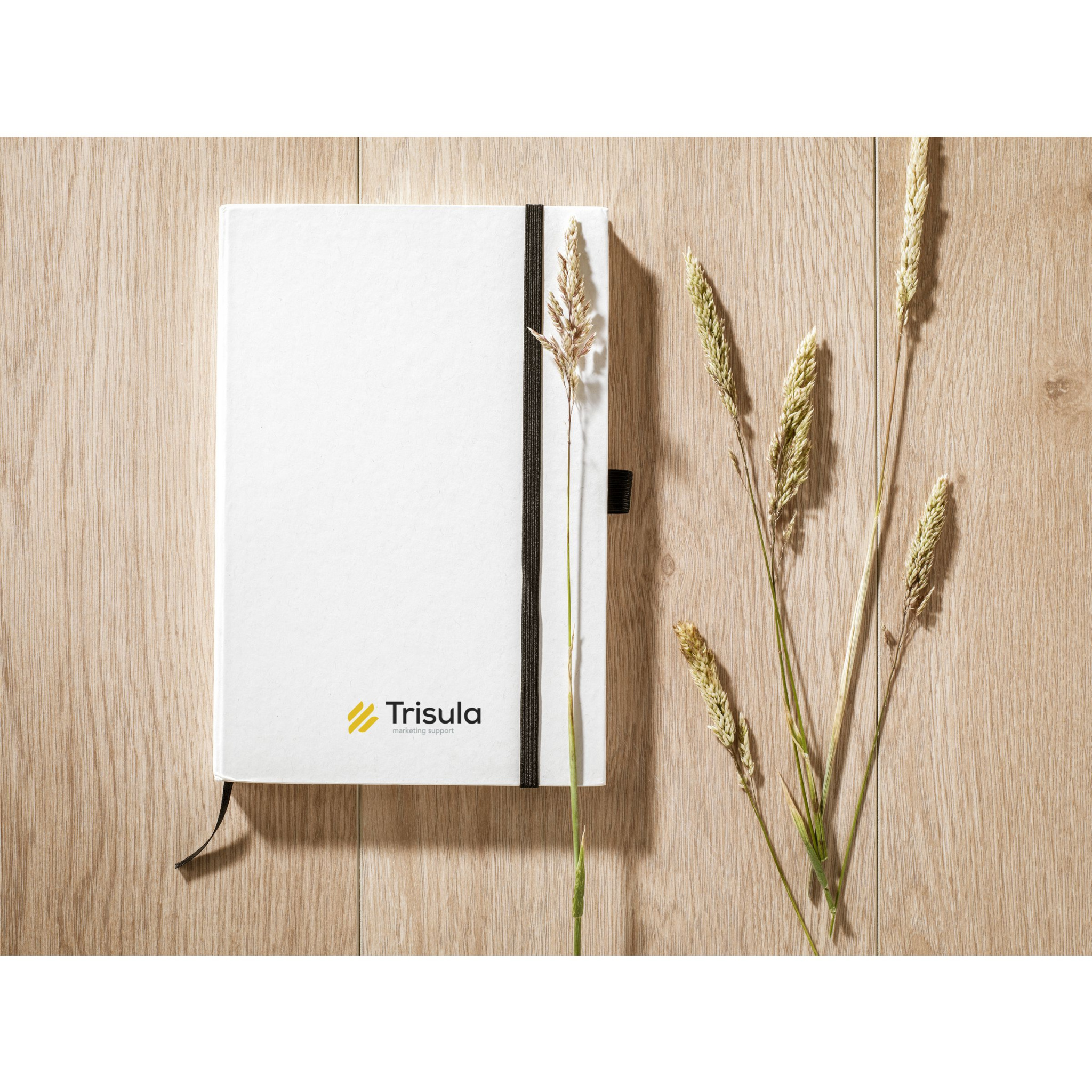 WoW! A5 notebook with a cover made from recycled milk cartons (up to 70%). With 80 sheets of cream-coloured lined paper (80 g/m²), elastic closure and a reading ribbon. The milk cartons consist of aluminum, paper and plastic. These materials are separated from each other and the leftover paper is used to make the cover of this notebook. Due to the use of recycled materials, small imperfections in the material may be visible. This gives the product a unique look.