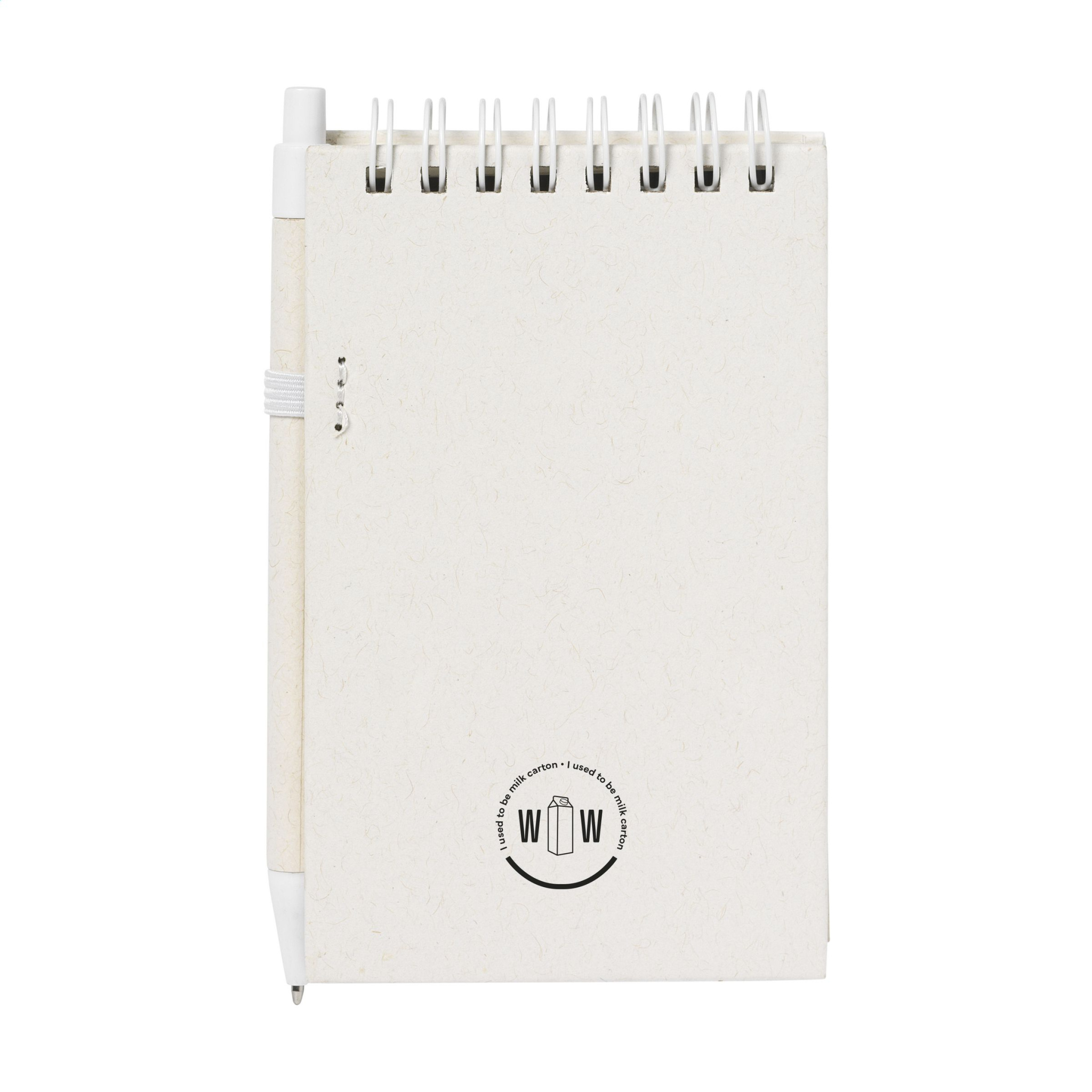 WoW! A6 notebook of which both the cover and the paper are made from the leftover paper from recycled milk cartons (up to 70%) and 30% recycled paper. The notebook is ring bound and has approx. 70 sheets/140 pages of cream-coloured, recycled, lined paper (80 gsm). It comes with a matching blue-writing ballpoint pen, made from recycled milk cartons. Due to the use of recycled materials, small imperfections in the material may be visible. This gives the product a unique look.