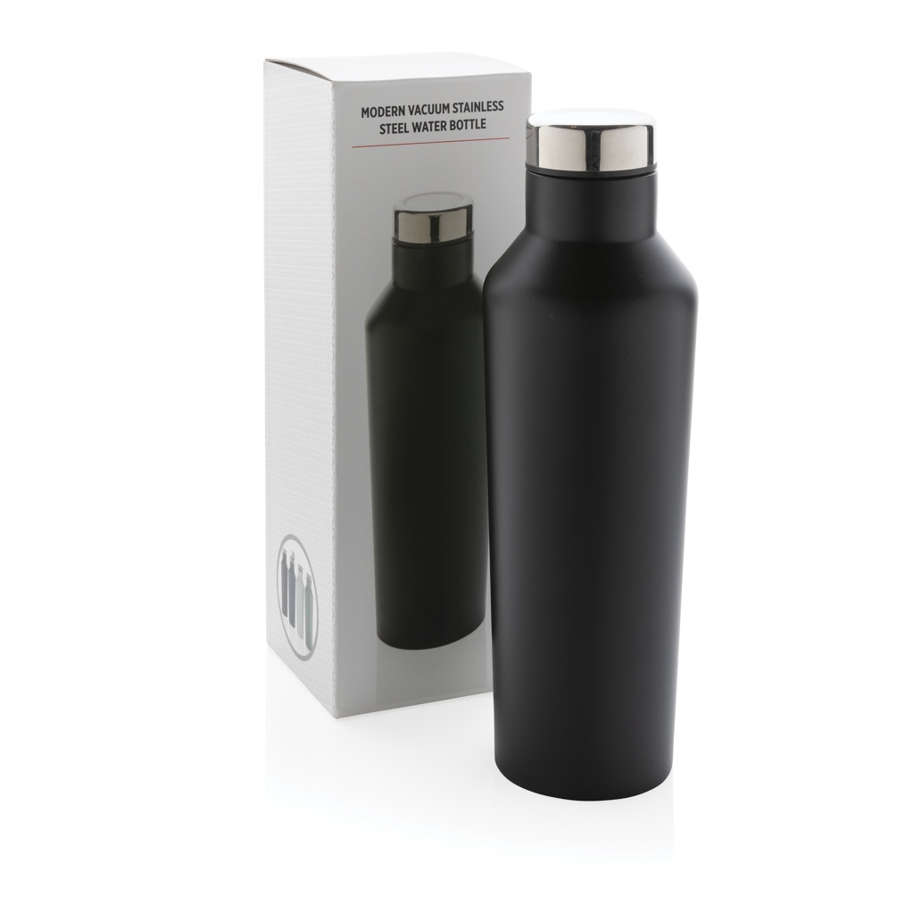 Modern vacuum stainless steel water bottle, black