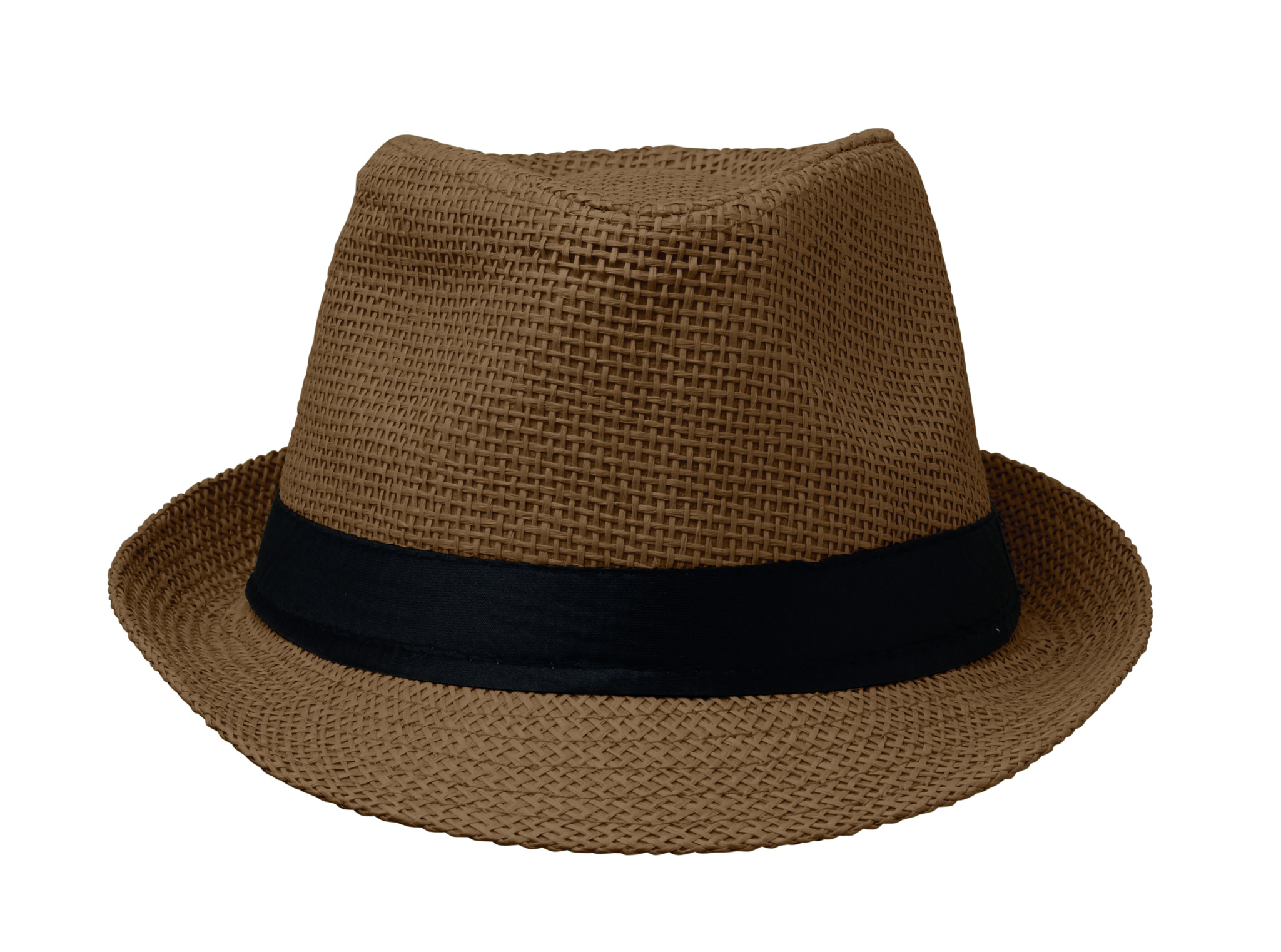 Paper straw hat with black polyester band. For unprinted orders the band will be supplied unattached to the items.