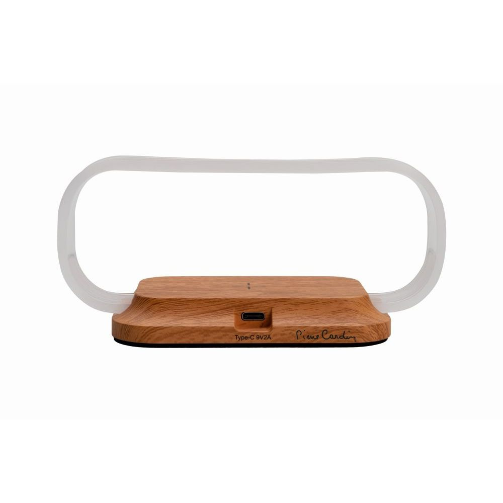 Elegant Pierre Cardin phone stand with 15W wireless charging function. The stand is made of wood imitation, which gives it a luxurious look. It includes a plastic frame with 3 shades of light. Input with USB Type-C 9V2A. Packed in a gift box with a certificate of authenticity.