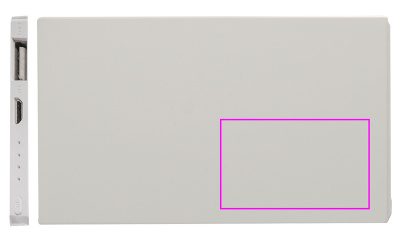 Powerbank with a capacity of 2,200 mAH and charge indicator, incl. USB charging cable. So your smartphone can be charged on the go. We print your logo in UV printing (CMYK) directly on the powerbank.