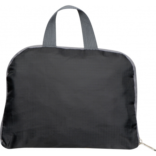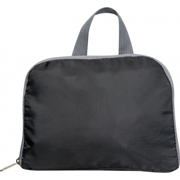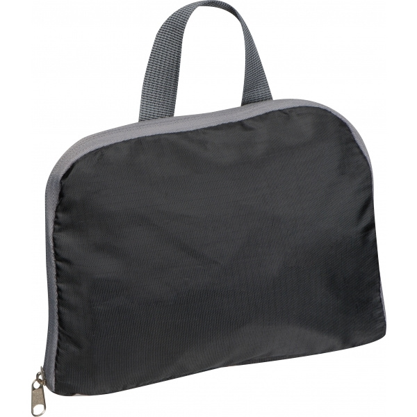 Foldable backpack made from recycled PET. The backpack features a main compartment, two mesh side pockets, and a front zipper pocket, as well as adjustable shoulder straps. The front zipper pocket doubles as a pouch for storing the folded backpack. The backpack is delivered in its closed state. Your logo will be printed on the outside when the backpack is closed. Printing on the front pocket of the backpack is available upon request.