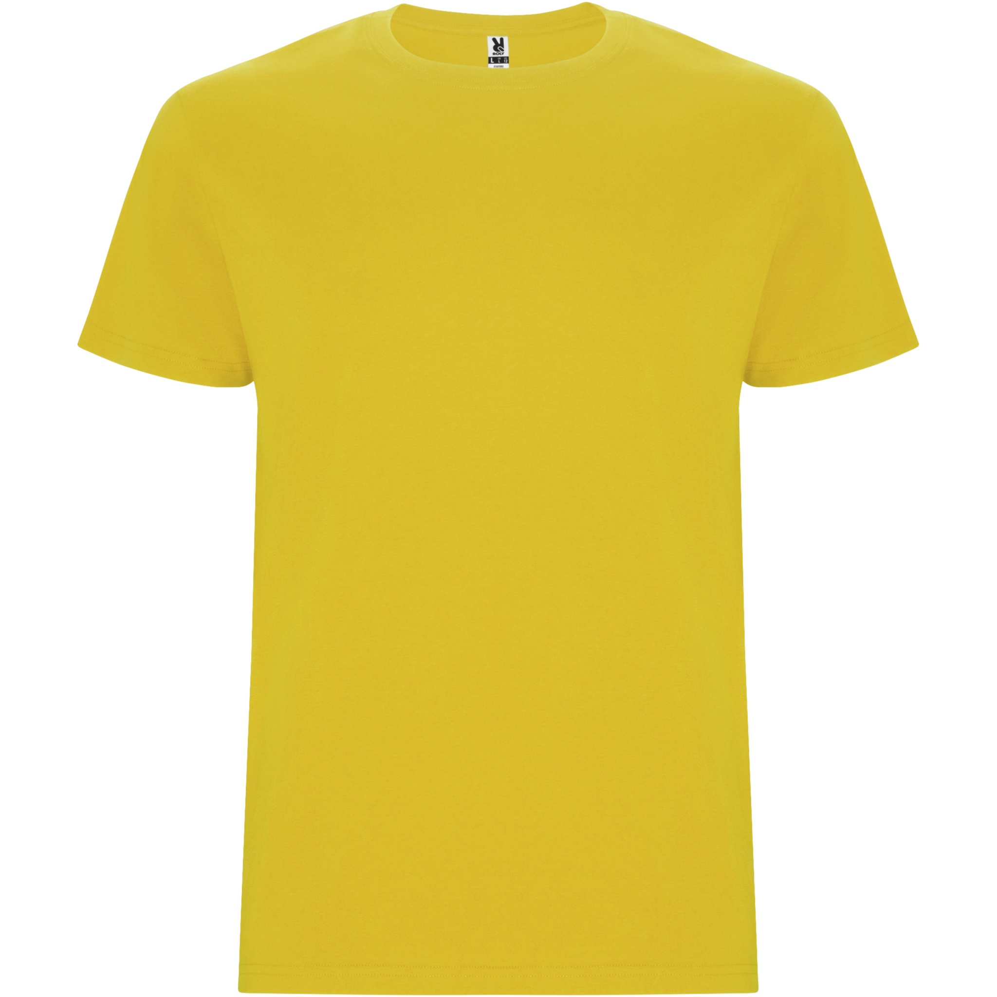 Tubular short-sleeve t-shirt. Crew neck with elastane. Side seams. Removable label.