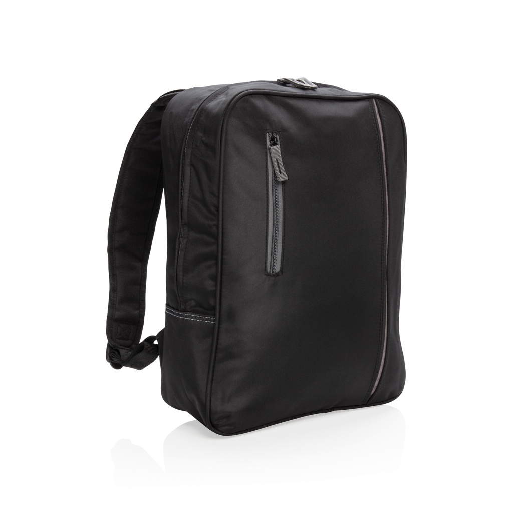 Padded microfibre and grey suedine detail, 2 compartments with padded folder suitable for 15,6” laptop, earphone exit, adjustable shoulder straps with phone pouch. Registered design®