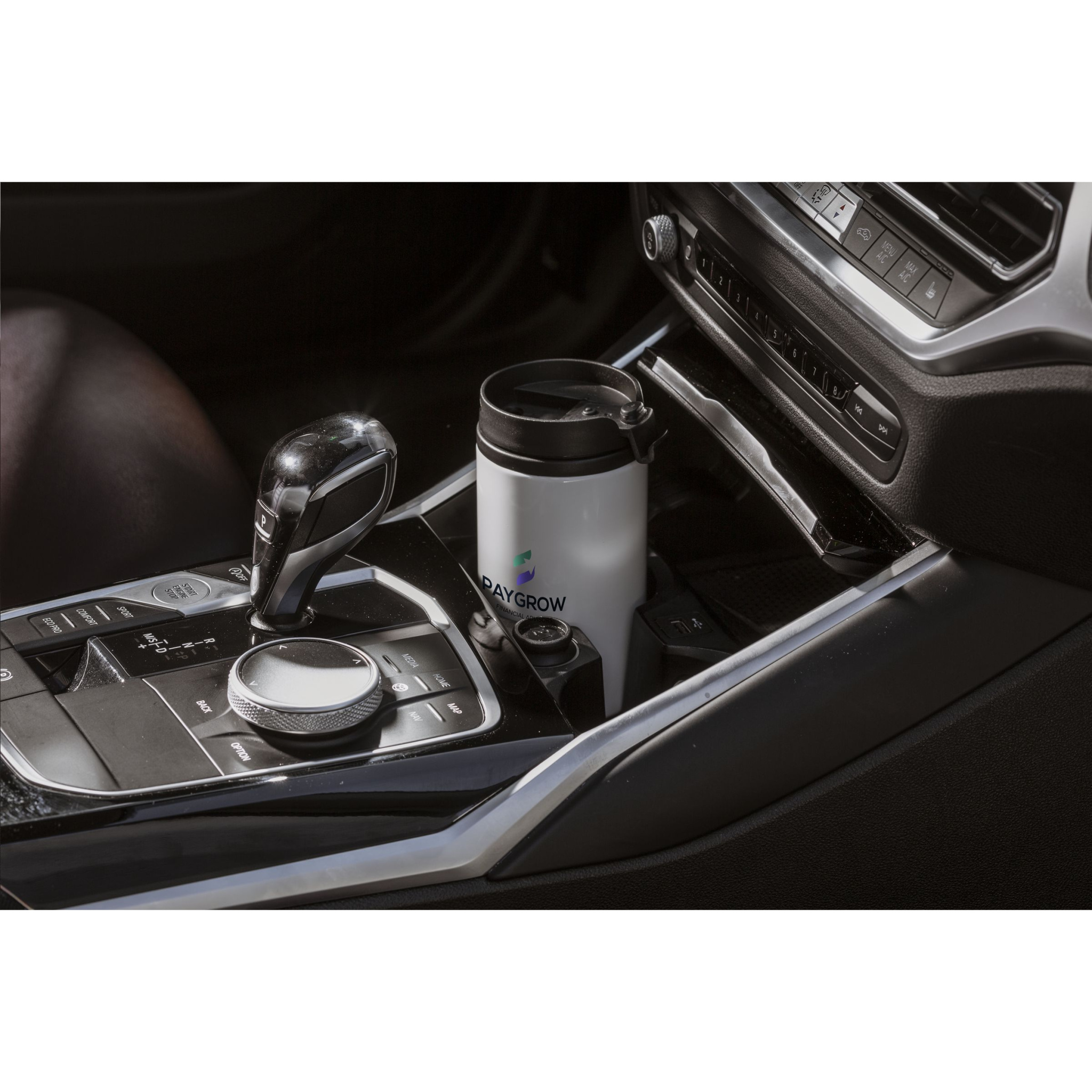 WoW! Double-walled thermos cup made from recycled stainless steel. With a plastic inner wall, screw lid and click-opening. Non-slip bottom. RCS-certified. Total recycled material: 46%. Capacity 300 ml. Stainless steel can be recycled many times whilst retaining the quality of the material. By using recycled stainless steel, fewer new raw materials are needed. This means less energy consumption and less use of water. A responsible choice. Each item is supplied in an individual brown cardboard box.