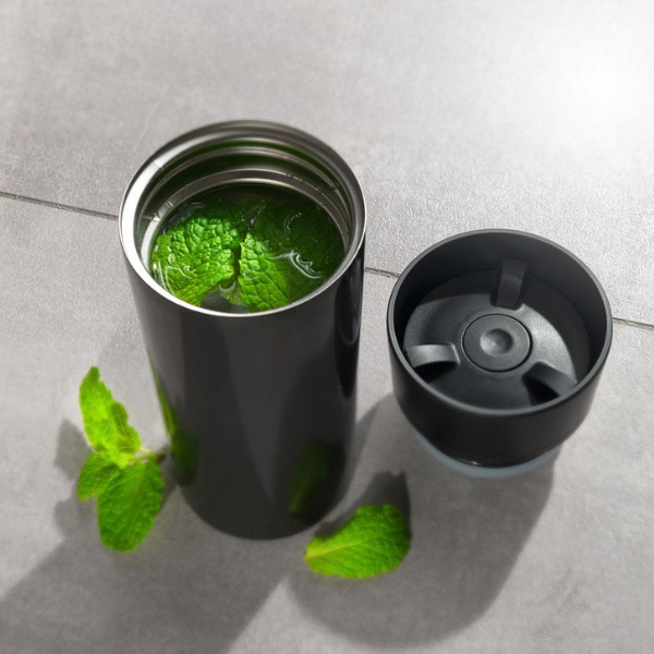 Double-walled thermo mug in an anthracite color with a volume of 300 ml. It is made of stainless steel. The mug will maintain the temperature of your drink approx. 6 hours (measured at room temperature), which makes it perfect for your tea or coffee. Thanks to the 360° opening, it allows drinking all around. Packed in a gift box.