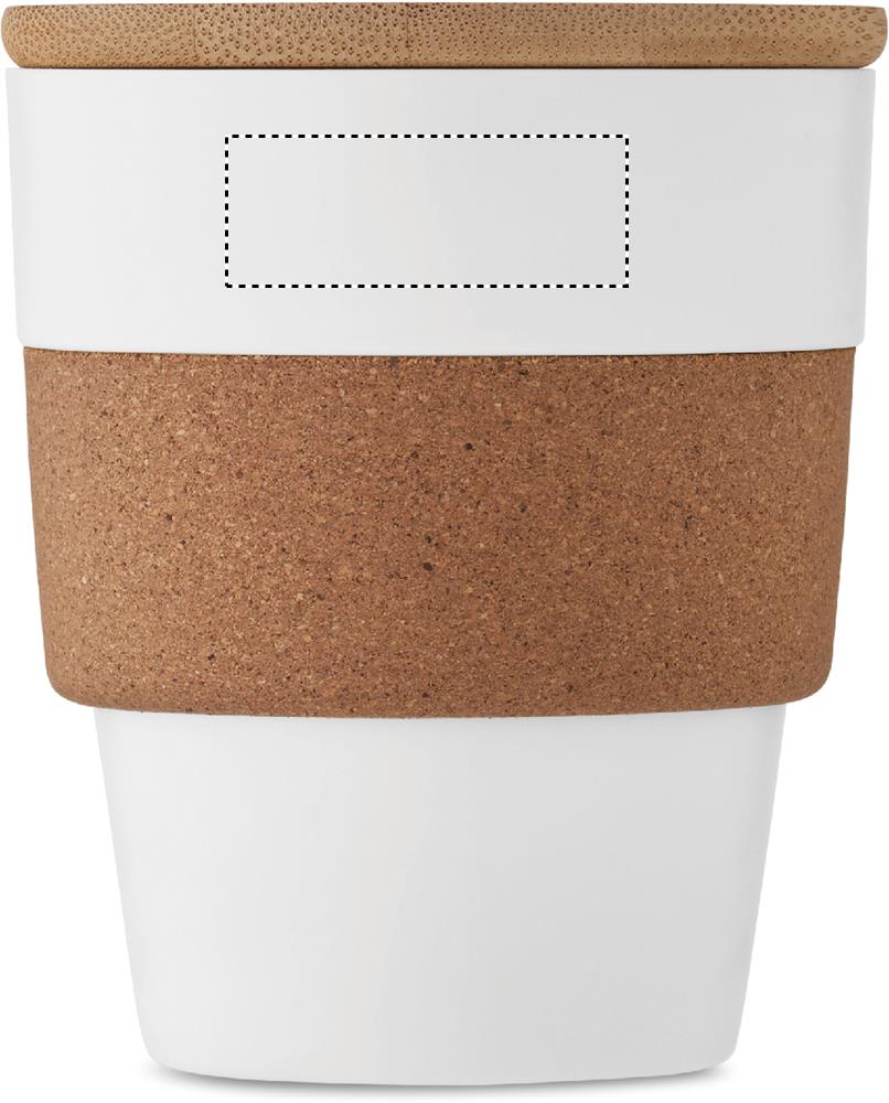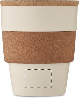 Single wall tumbler in recycled PP with cork protective sleeve and bamboo lid. Capacity: 300 ml. As this is a single walled mug heat transfer can still occur. Bamboo is a natural product, there may be slight variations in colour and size per item, which can affect the final decoration outcome.