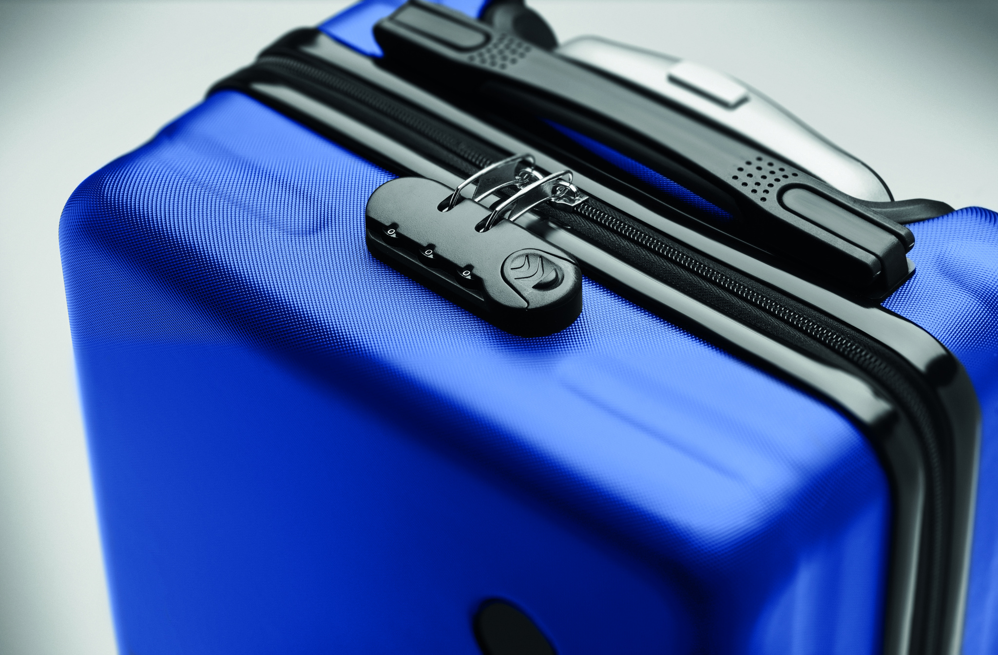 14 inch underseat luggage trolley with 4 wheels in ABS. It has an inside zippered pocket. Including a combination lock and double tube frame.