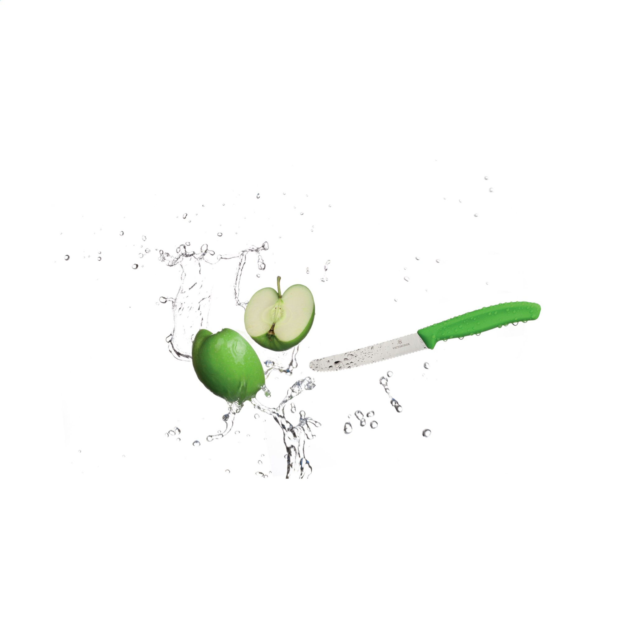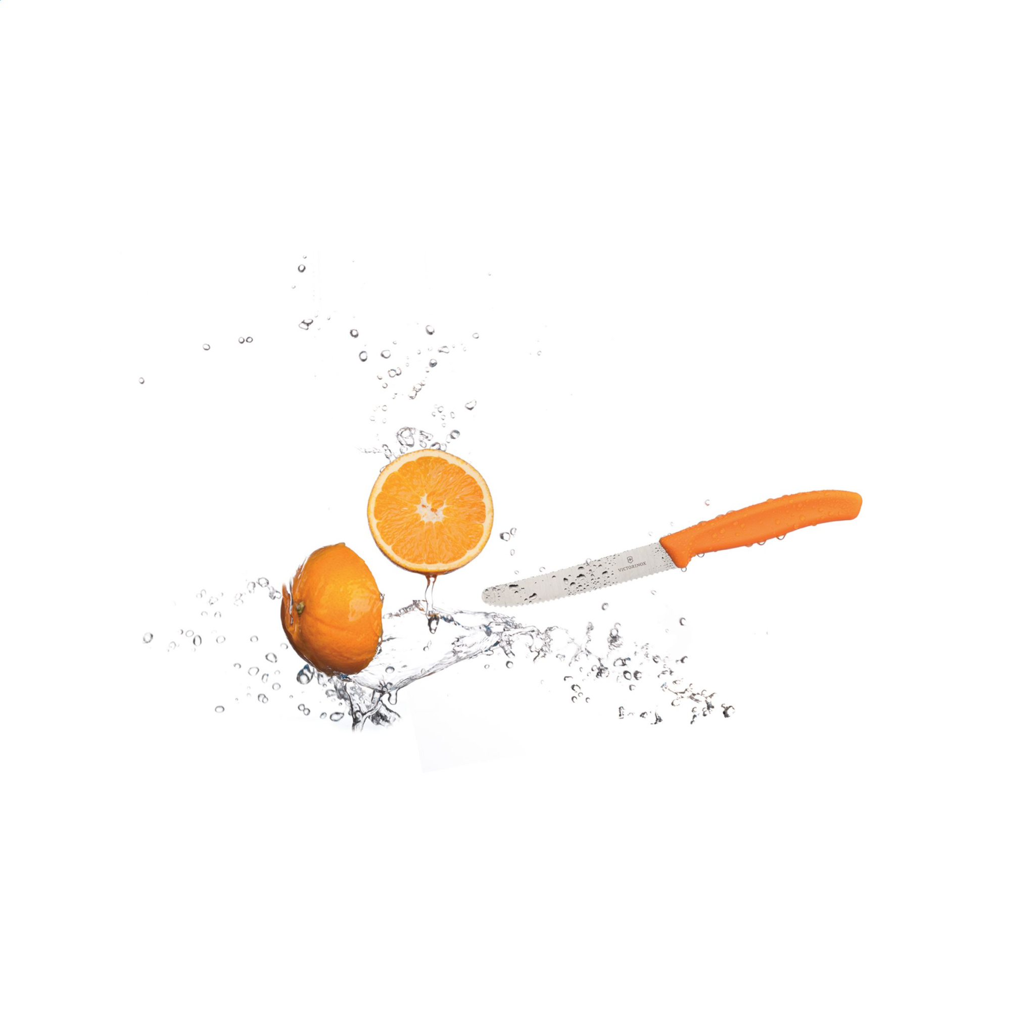 Top-quality table knife made by Victorinox Swiss Classic. The high-quality stainless steel blade (11 cm) is serrated and has a rounded edge. With plastic hilt. This knife is very comfortable to handle thanks to the ergonomic design. Can be used for eating or for any number of jobs in the kitchen. Dishwasher-safe. Exclusive Victorinox protective sleeve. This is available seperately (item no. 0692).