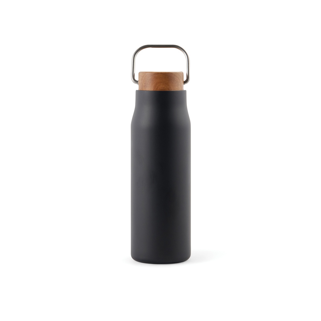 Ciro RCS recycled vacuum bottle is an elegant and functionally designed thermos bottle. The bottle has a lid of acacia wood with a metal loop, which makes the bottle easy to carry with you when you're on the go. Acacia wood is an organic material where variations in shade and color are natural characteristics. The vacuum construction with double walls in recycled stainless steel ensures that the bottle keeps the temperature intact for a long time, both hot and cold drinks. Certified by RCS (Recycled Claim Standard), RCS certification guarantees that the entire supply chain of the recycled materials is certified. The total recycled content is based on the overall product weight. This product contains 69% RCS-certified recycled stainless steel. The bottle is easy to clean and should only be cleaned by hand. Including FSC®-certified kraft packaging.