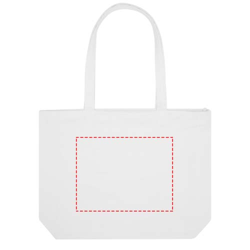 With its large capacity, the recycled Weekender tote bag is perfect to bring on a short getaway trip. The tote bag features a full length zipper, ensuring that items remain protected inside. The main compartment also holds a small pocket with zipper to use for smaller items. The tote bag incorporates Cyclo® recycled fibres where they use pre-sorted waste that determines the colour of the yarn. These fibres do not only reduce the demand for virgin resources but also exhibit a commitment to a circular life, embodying the essence of reducing waste and promoting a closed-loop system. Each bag also comes with an Aware™ tracer. This innovative feature allows users to trace the origins and journey of their item through a QR code, enhancing transparency in the supply chain and fostering a stronger connection between the product and its production process.