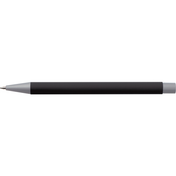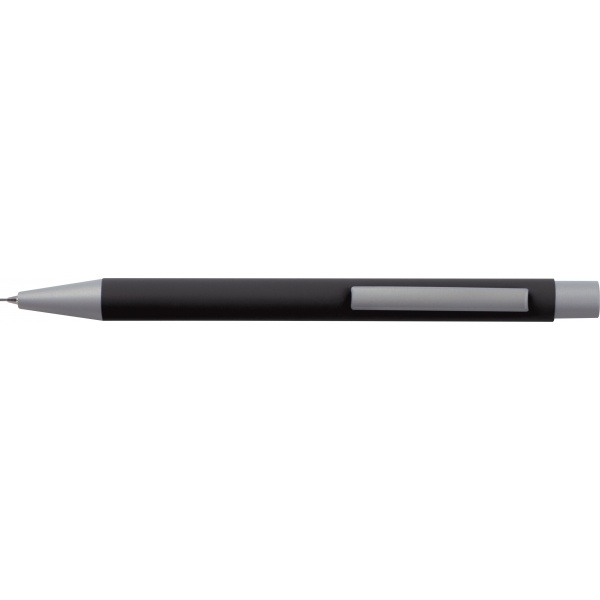 Writing set consisting of a blue-writing metal ballpoint pen with a plastic jumbo refill and a matching mechanical pencil with two 0.5mm pencil leads. Both pens feature a rubber finish surface for a pleasant feel, and the case is made from recycled PU.