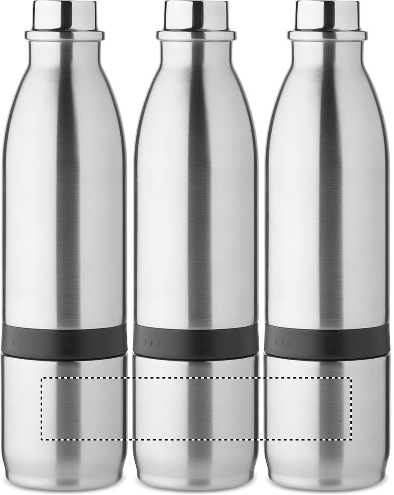 2-ühes kahekordse seinaga roostevabast terasest vaakumisolatsiooniga pudel koos eemaldatava keeratava kaanega trumliga. Lekkevaba. Mahutavus: pudel: 500 ml / trummel: 310 ml.