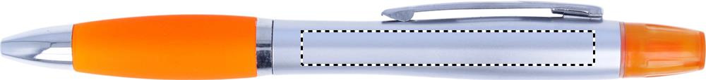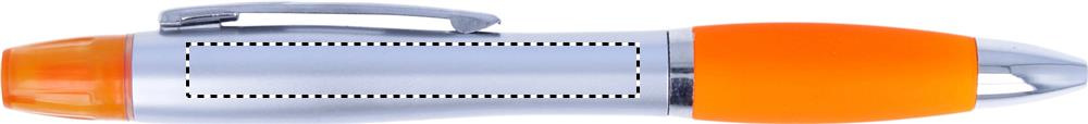 2-ühes plastmassist pastapliiats ja marker hõbedase satiinviimistlusega, kroomitud detailidega. Sinine tint.